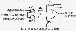 语音命令提供该单元(如图2)在电视话音和其它噪音背景下,完成提取出操作者语音命令功能,其示意图如图3所示。