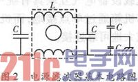 该数字式控制器的电源滤波器由电感、电容、共模电感元件构成低通滤波器,其基本电路如图2所示。