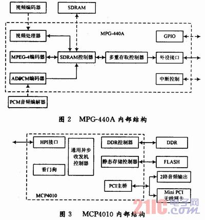 视频压缩芯片采用的是Imagia公司的MPG-440A,如图2所示,它是针对网络视频传输所设计的MPEG-4专属芯片。MPG-440A支持高阶影像数字监控功能,包含D1分辨率、防伪水印、动态调整IP帧比率与动态调整质量,是特殊场合监控用的最佳影像处理器,可产生最小比特率并符合长时间储存要求。