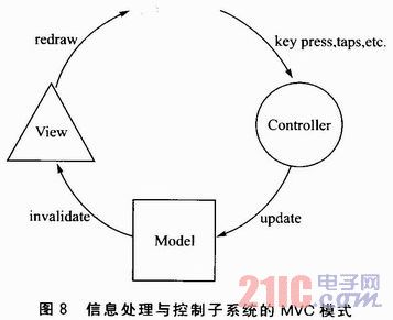 Android智能移动平台的研发需要借助Eclipse、NDK和JNI等工具和方法。信息处理与控制子系统的MVC模式如图8所示。本文是按MVC模式研发信息处理与控制子系统的。