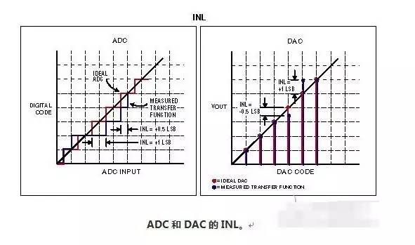 对于数据转换器,积分非线性(INL)是实际传递函数与传递函数直线的偏差。消除失调误差和增益误差后,该直线为最佳拟合直线或传递函数端点之间的直线。INL往往被称为“相对精度”。