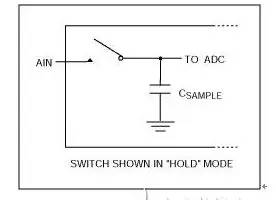 跟踪-保持往往也被称为“采样-保持”,指ADC的输入采样电路。跟踪-保持输入的最基本表示形式是模拟开关和电容(见图)。开关闭合时,电路处于“跟踪”模式;开关开路时,采样电容保持输入的最后瞬态值,电路处于“保持”模式。