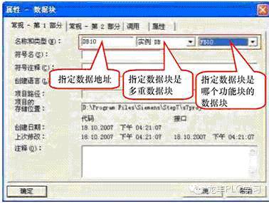 多重数据块是数据块的一种特殊形式,如在OB1中调用FB10,在FB10中又调用FB1和FB2,则只要FB10的背景数据块选择为多重背景数据块就可以了,FB1和FB2不需要建立背景数据块,其接口参数都保存在FB10的多重背景数据块中。建立多重背景数据块的方法是:在建立数据块只要在数据类型选项中选择“实例的DB”就可以了。