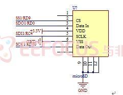图3-14 使用SPI1接口与miniSD卡连接