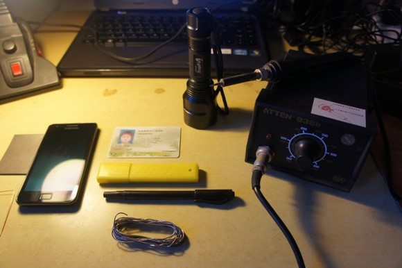 Step1:大致工具,手机一部(不能是金属后盖啊!!),磁感应线圈,屏蔽磁贴(淘宝有售),待植入卡片,美工刀,记号笔,焊丝,可调温电焊台(或者低温电烙铁),强光电筒,镊子。。。。差不多就这些吧,有的工具不是必要,比如镊子,但是用起来会方便一点~~