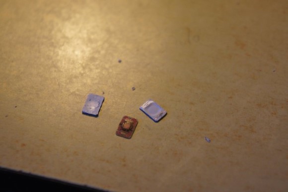 Step5:用美工刀小心的分开芯片正反两个基层,下图是取下芯片正反两面的样子