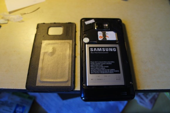 Step8:将磁贴站在手机内部合适的位置。Ps:iphone4这样的手机可以拆开手机后盖粘在里面但是一定注意磁贴粘的位置,不要把手机天线和wifi天线粘住了
