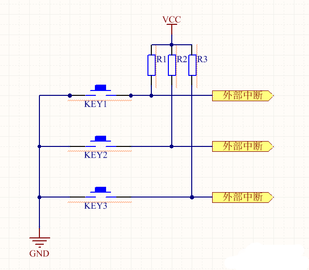 在单片机系统里,按键是常见的输入设备,在本文江介绍几种按键硬件、软件设计方面的技巧。一般的在按键的设计上,一般有四种方案:一是GPIO口直接检测单个按键,如图1.1所示;二是按键较多则使用矩阵键盘,如图1.2所示;三是将按键接到外部中断引脚上,利用按键按下产生的边沿信号进行按键检测,如图1.3所示;四是利用单片机的ADC,在不同的按键按下后,能够使得ADC接口上的电压不同,根据电压的不同,则可以识别按键,如图1.4所示。